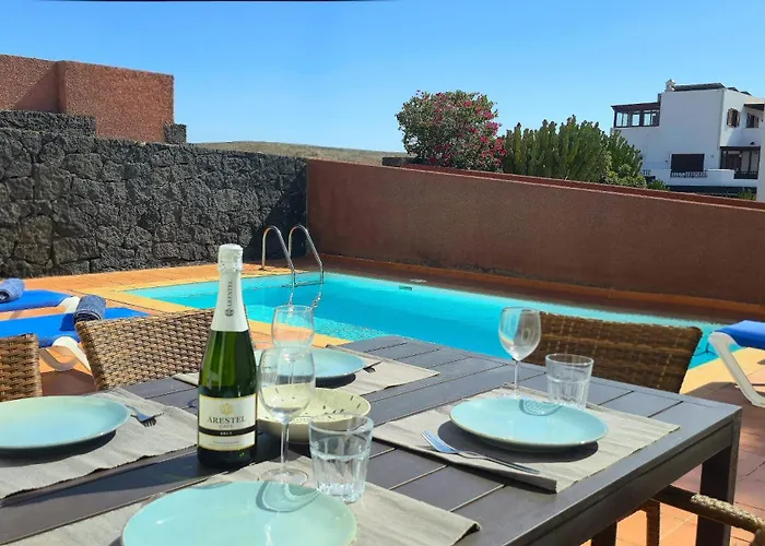 Located a mere 0.7 km from the EL Pueblo Shopping Center, Casa Kerrie, Private And Communal Pools, Sunny Terrace, Air Conditioning Playa Blanca offers a patio with views of the garden.